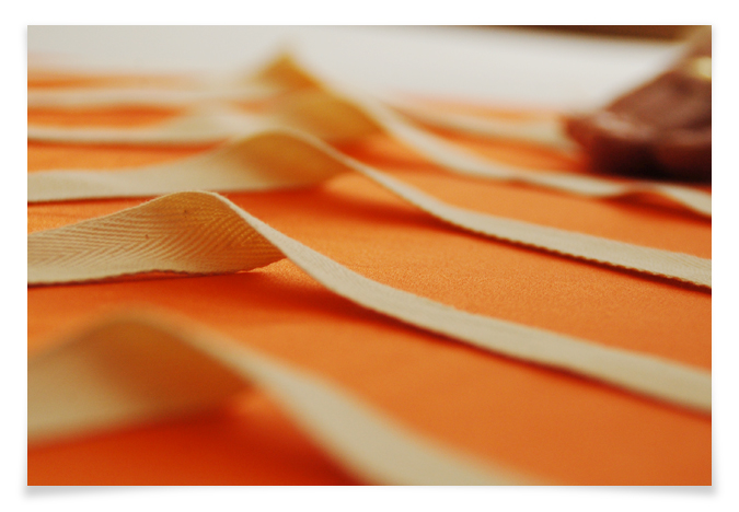 תופרים את הסרטים (שימו לב שאתם תופרים רק שיכבה אחת של בד כתום!)