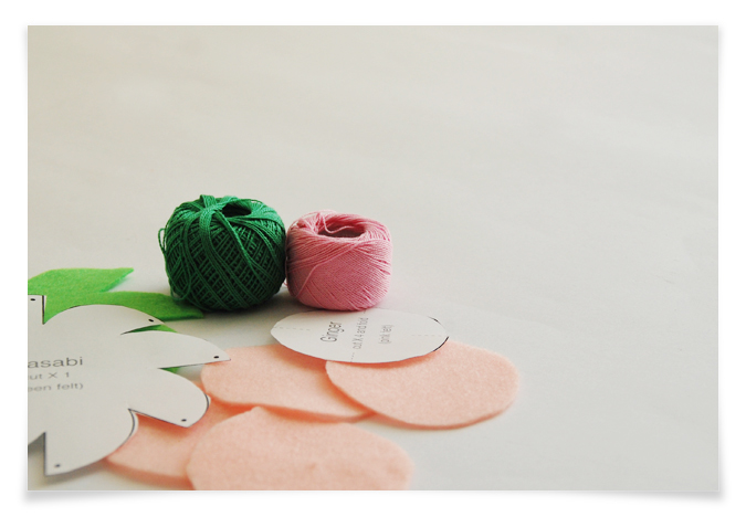 - 2 פיסות לבד (Felt) בצבע ירוק ובצבע ורוד